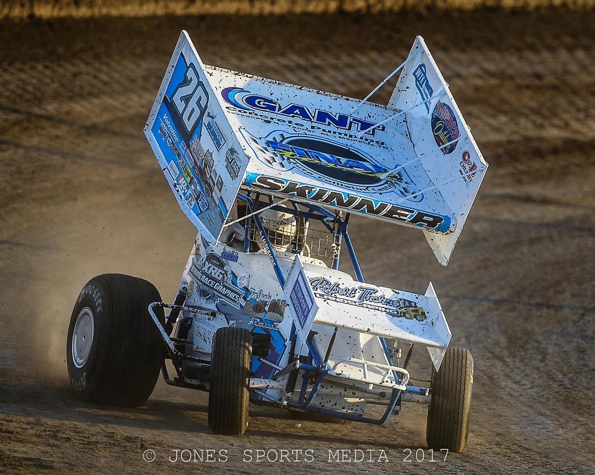 Skinner’s evening began with an eventful heat race when he was forced to start at the rear of the field with three laps to go after running second.
